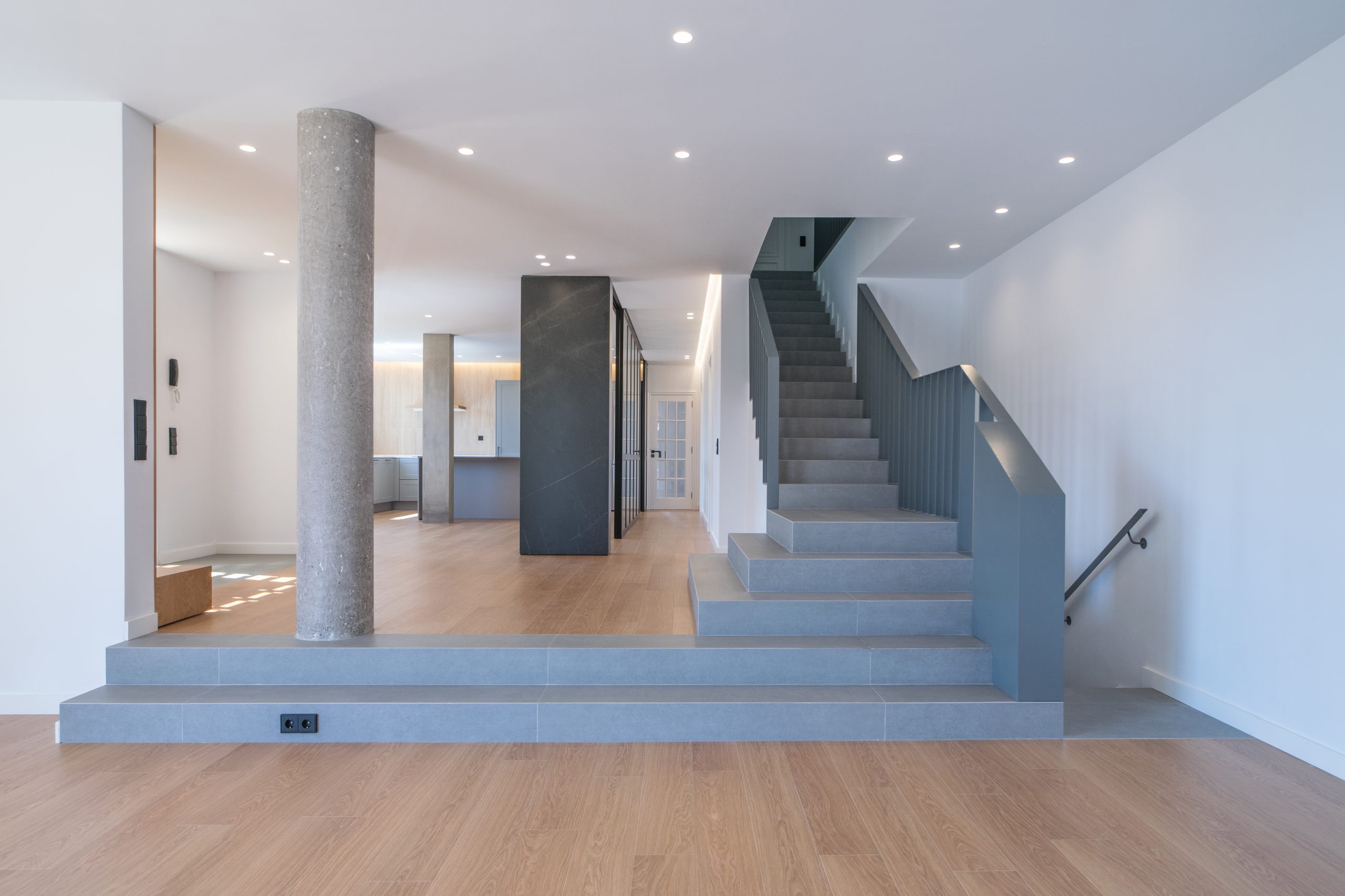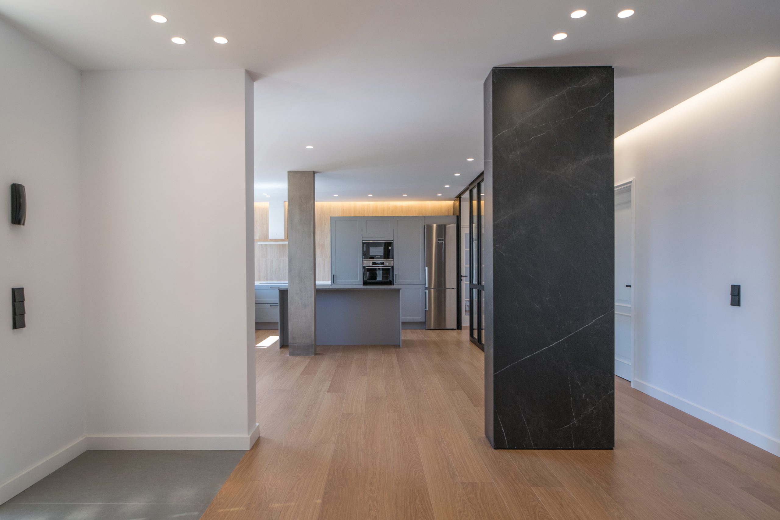 Una vivienda de los años 90 construida con un marcado carácter de lujo que, con el paso del tiempo, se muestra exagerado en el momento en que llegamos a planificar la reforma. Se eligen con mucha precisión los movimientos a la hora de intervenir porque la amplitud de los espacios nos lo permite, centrándonos en eliminar algunas divisiones para generar las interconexiones que propone el nuevo programa.